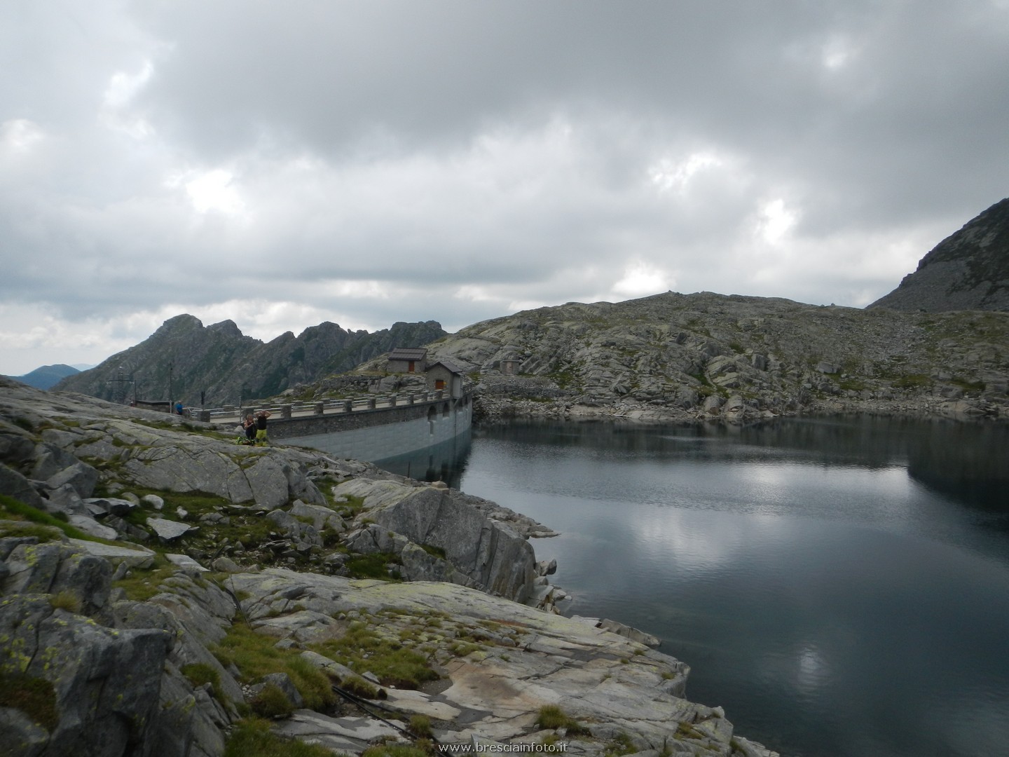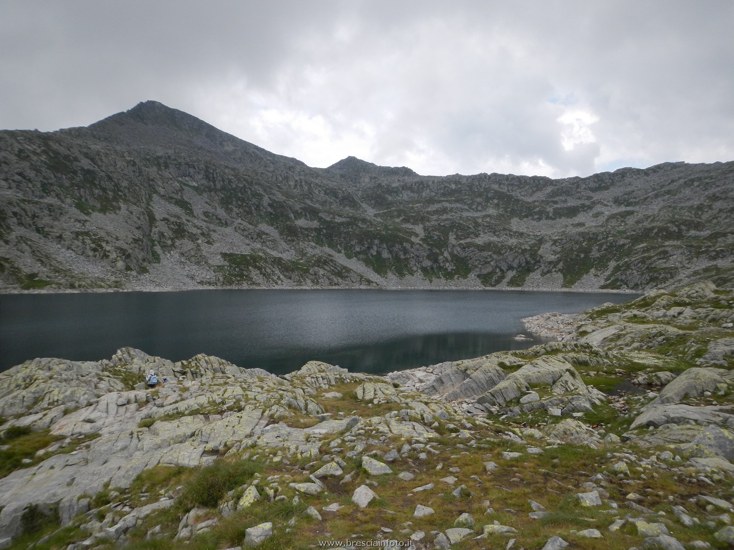 Giunti al passo dopo 3:50h di cammino, decidiamo di sostare e pranzare rapidamente. Ripartiti poco dopo, iniziamo ad avere una splendida vista sul Lago della Vacca.