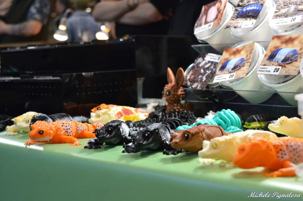 “Ho sempre amato gli animali. Ho iniziato con i fasmidi e poi mi sono spostata su altri tipi di animali. È un percorso di crescita che fai, c’è da studiare tanto, c’è da capire. Mi fa piacere quando la gente si appassiona a questi animali perché vedo che i miei sforzi non sono stati vani. Io li accudisco per regalare emozioni.” Dice così un’espositrice, emozionata e risoluta nella sua filosofia.